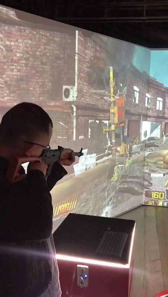 An immersive shooting game platform powered by HD projection and sensing technology. It projects dynamic warzone and hunting scenarios onto a giant screen. Using infrared-sensing toy guns, it offers players a novel interactive experience of virtual target practice within a real-world physical space.